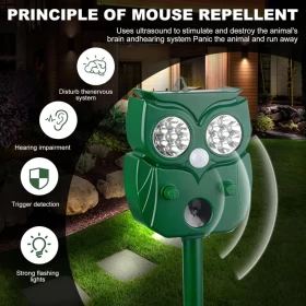 Keep unwanted animals away humanely with this solar-powered ultrasonic repellent. It combines light, motion detection, and ultrasonic waves to deter cats, dogs, rodents, and more—perfect for gardens, yards, and balconies.