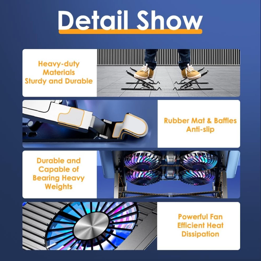 • Detachable Fans serve as Both Laptop Cooler & Stand:The clever design with fans that can be easily disassembled and reassembled. It can serve not only as a laptop cooler but also as a laptop stand. When the fan is removed, it can still firmly support your laptop, allowing you to work comfortably. When you need cooling, simply attach the fan to provide efficient heat dissipation for your laptop