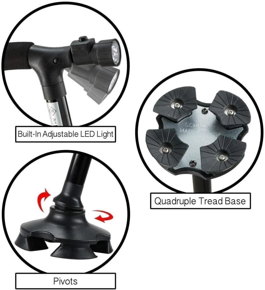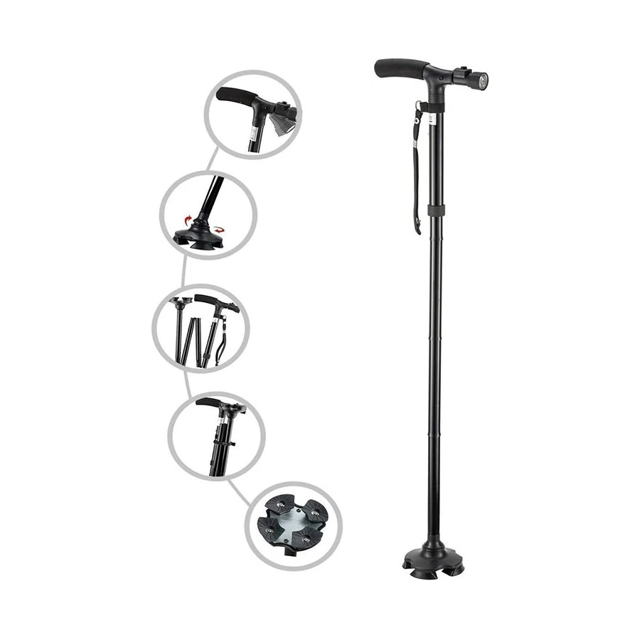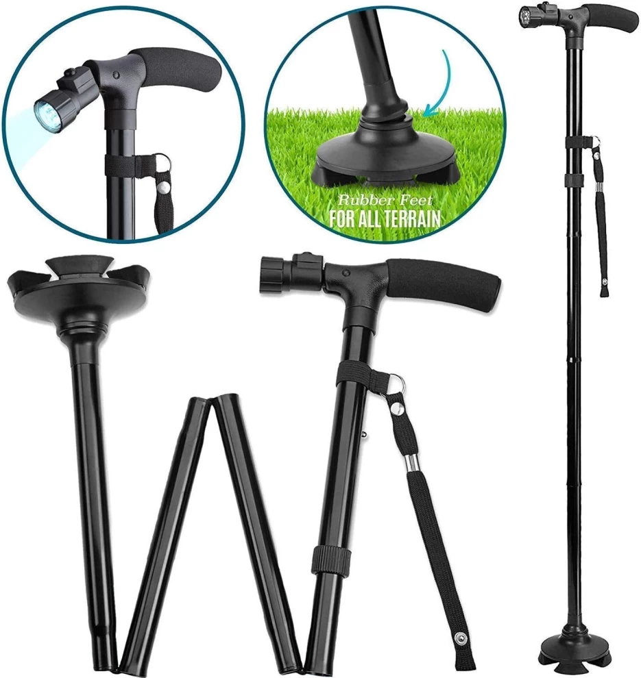 An easy-to-carry walking aid designed for safety, comfort, and convenience. This cane features a built-in LED light for nighttime visibility and folds neatly when not in use. Ideal for seniors, recovery patients, or anyone needing walking support.