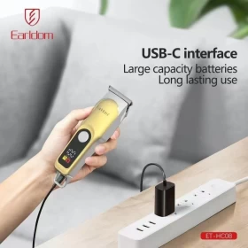 The Earldom ET-HC08 is a professional cordless hair trimmer designed for precision and convenience in personal grooming. Its rechargeable feature and robust build make it suitable for both home and professional use.
