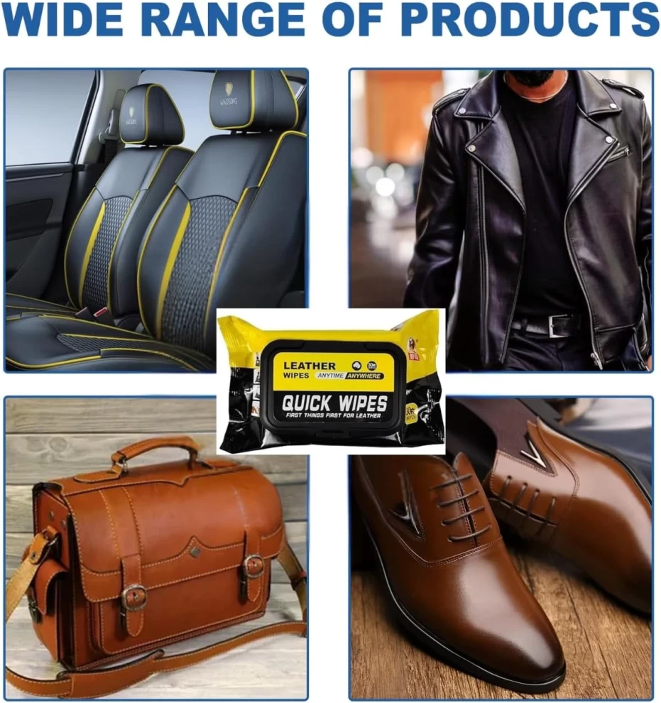 Keep your leather items looking pristine ✨ with these versatile cleaning wipes 🧽. Perfect for leather upholstery 🛋️, shoes 👟, bags 👜, jackets 🧥, and caps 🧢. Easy-to-use and quick dirt & stain removal 🚫, disposable for convenience 🗑️. Ideal for daily use and travel 🌍.