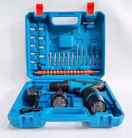 Compact and powerful, this 12V cordless drill is the perfect companion for DIY projects, furniture assembly, and home repairs. Comes with a full tool kit for added versatility.