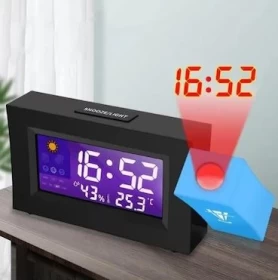 Start your day smarter with this modern LED alarm clock featuring a 180° rotatable projector, large digital display, and multiple functions. Ideal for bedrooms, offices, or travel.