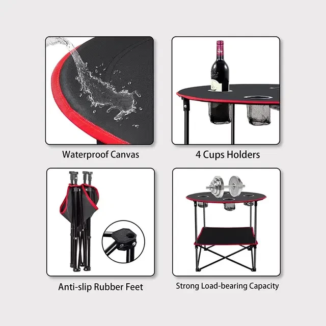 Enjoy your outdoor adventures with the Canvas Folding Camping Table with 4 Cup Holders — a lightweight, portable, and practical table designed for camping, picnics, beach trips, and backyard gatherings. With built-in cup holders, you can keep your drinks safe and your hands free while relaxing outdoors.