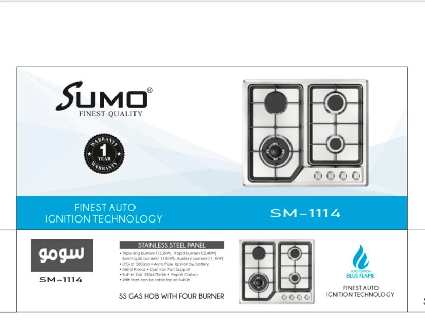 Cook faster, smarter, and safer with the Sumo Gas Stove SM-1114, designed with 4 high-performance burners to handle multiple dishes at once. Perfect for families, home chefs, and everyday cooking, this durable gas stove combines efficiency, style, and convenience in one appliance.
