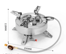 Enjoy practical and efficient cooking anywhere with this portable 5-burner gas stove. Its compact design makes it ideal for kitchens with limited space, outdoor picnics, camping trips, or catering use. Equipped with five separate burners, it allows you to cook multiple dishes at the same time with individual flame control for each burner. The sturdy metal construction ensures durability, while the smooth surface is easy to clean. Simple to connect and operate with standard gas cylinders, this mini stove offers a reliable and versatile solution for everyday cooking needs, both indoors and outdoors.
