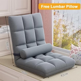 Adjustable Floor Chair with Back Support Folding Padded Sofa Chair (Grey)