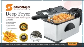 Fry your favorite foods quickly and evenly with the Sayona Electric Deep Fryer 3L. With a stainless steel body, adjustable temperature, and safety features, this fryer is perfect for fries, chicken, fish, and snacks. Compact yet powerful, it brings restaurant-quality frying to your home kitchen.