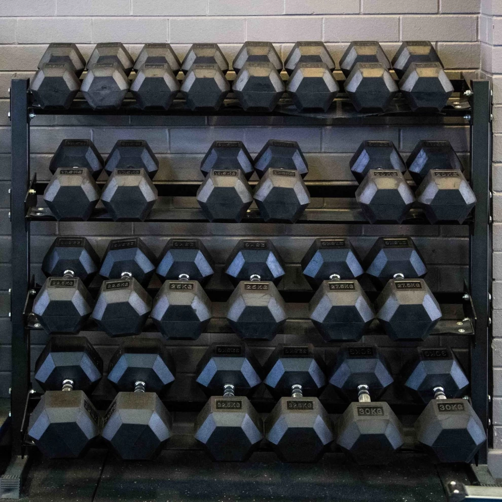 • 1 × 15KG Rubber Hex Dumbbell (Black)
