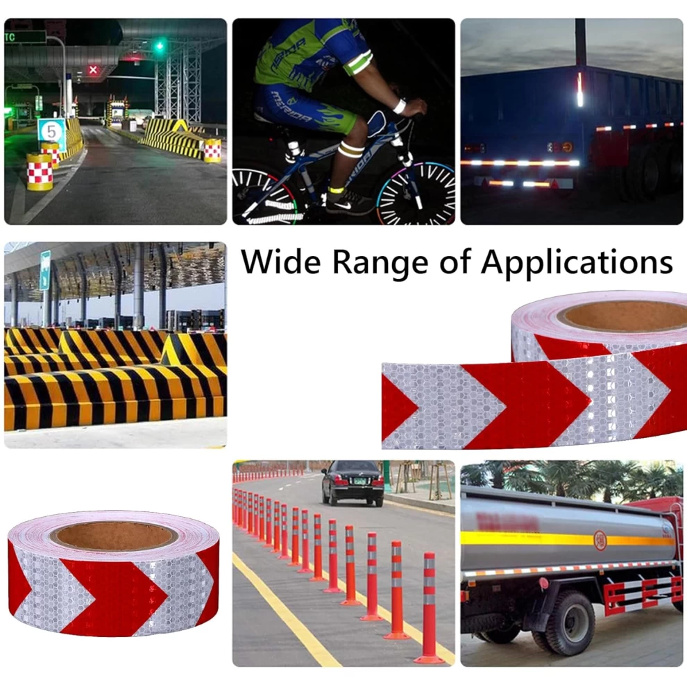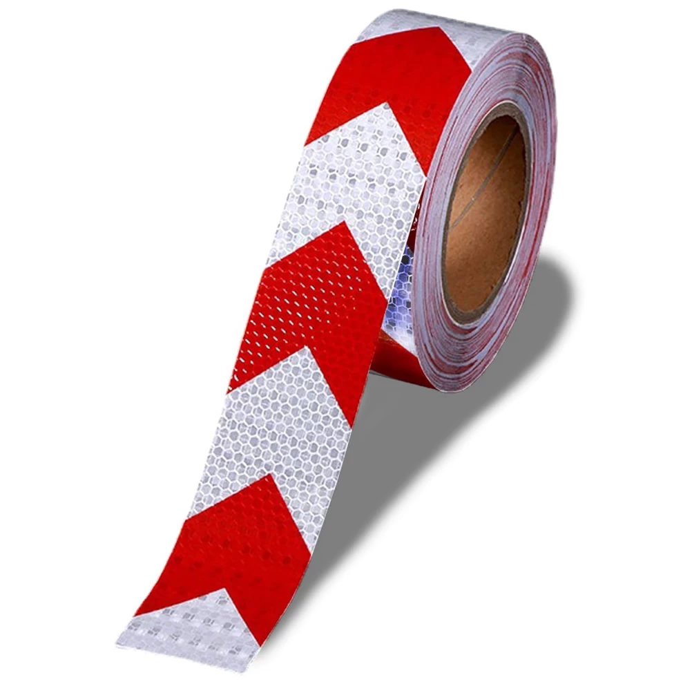 Reflective Arrow Warning Tape – 5cm × 25m – Red & White – Self-Adhesive Safety Sticker