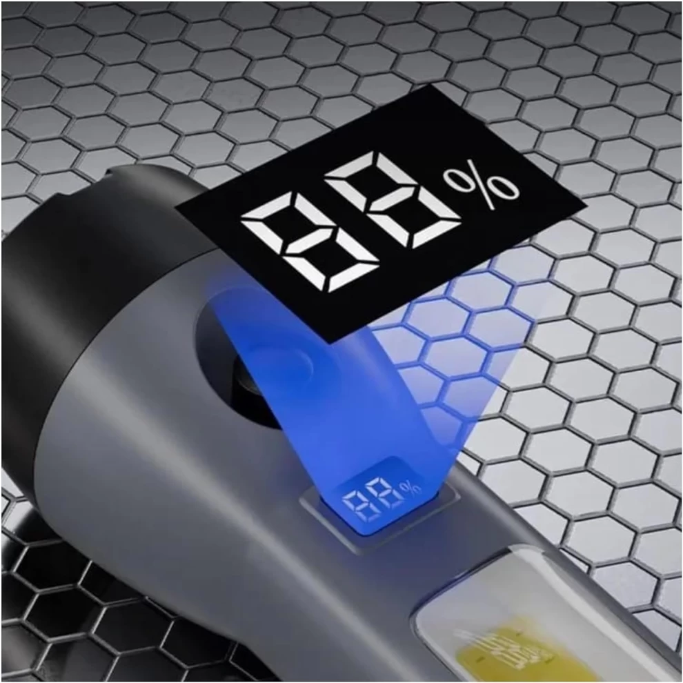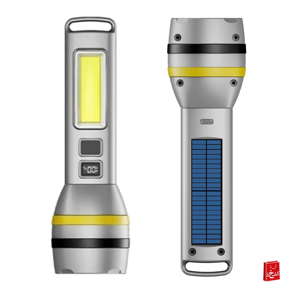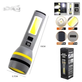Powerful Rechargeable LED Flashlight with Adjustable Focus, Digital Battery Indicator & Solar/USB Charging