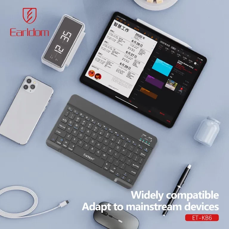 Upgrade your typing experience with the Earldom KT-KB6 wireless keyboard, designed for mobile phones, tablets, and laptops. Featuring Bluetooth connectivity, rechargeable battery, and multi-language layouts, this keyboard is perfect for work, study, and travel. Compact, lightweight, and highly responsive, it’s ideal for users who need efficient typing on the go.